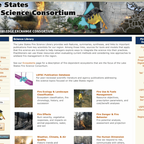 The Lake States Fire Science Library provides web features, summaries, syntheses, and links to important publications from key scientists for the Lake States region.